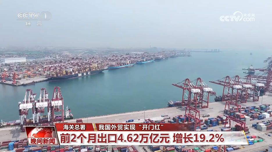 央視網(wǎng)消息:海關(guān)總署3月10日發(fā)布外貿(mào)數(shù)據(jù),今年前2個月,我國貨物貿(mào)易進出口同比增長18.3%,外貿(mào)開局良好。