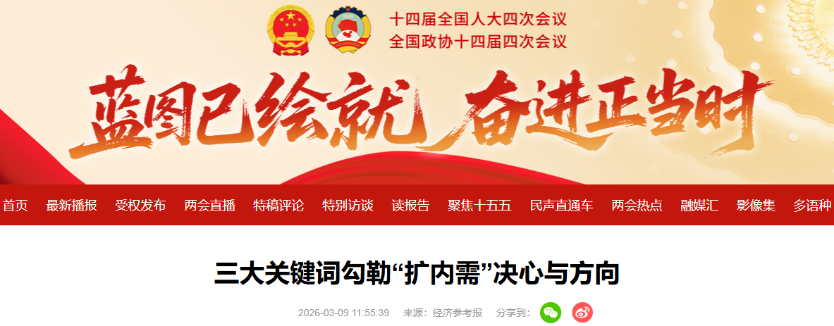 今年的政府工作報告中,“擴(kuò)內(nèi)需”不僅繼續(xù)位列工作任務(wù)之首,更被賦予新的政策內(nèi)涵與操作路徑。從代表委員以及業(yè)界專家觀點來看,“民生為大”“向新而行”“加減乘除”成為三個核心關(guān)鍵詞,從政策導(dǎo)向、承載路徑和保障舉措三個方面,共同勾勒出“十五五”開局之年擴(kuò)大內(nèi)需的決心與方向。