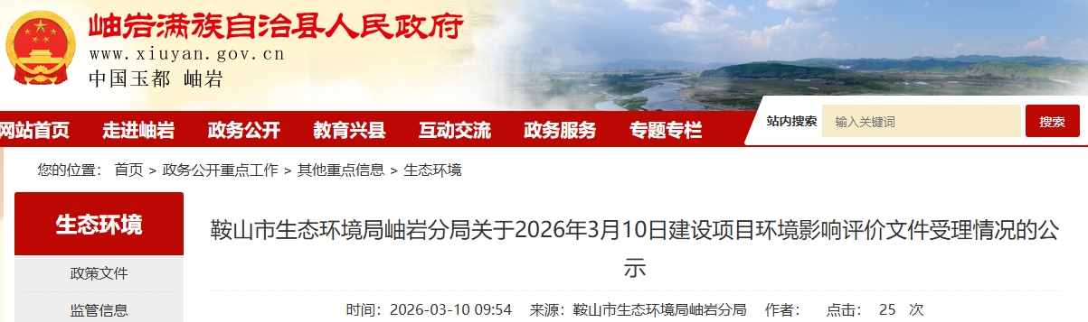 根據(jù)建設項目環(huán)境影響評價審批程序的有關規(guī)定,我局受理了個環(huán)境影響報告表。現(xiàn)將受理情況予以公示,公示期為5個工作日。